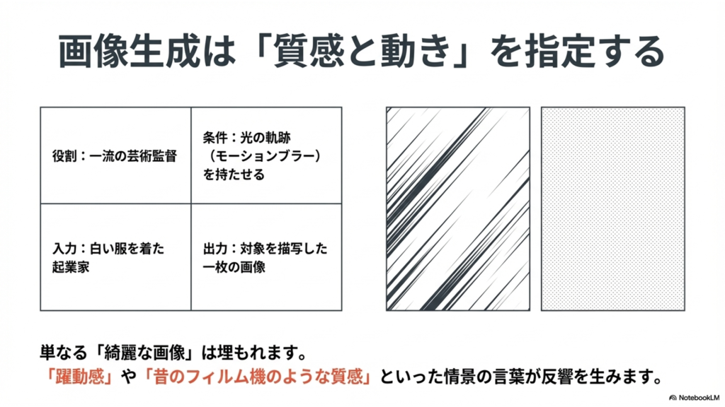 SNSなどで目を引く画像を作る際にも、指示の出し方には明確な流行があります。