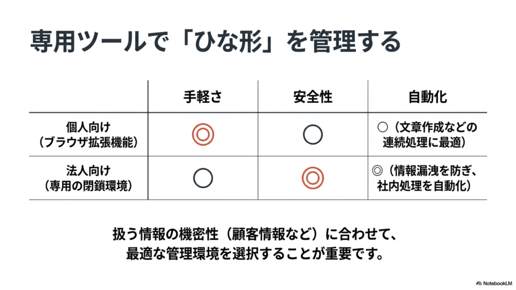 各ツールの機能や料金プラン、セキュリティ基準などは頻繁にアップデートされ、変更される可能性があります。